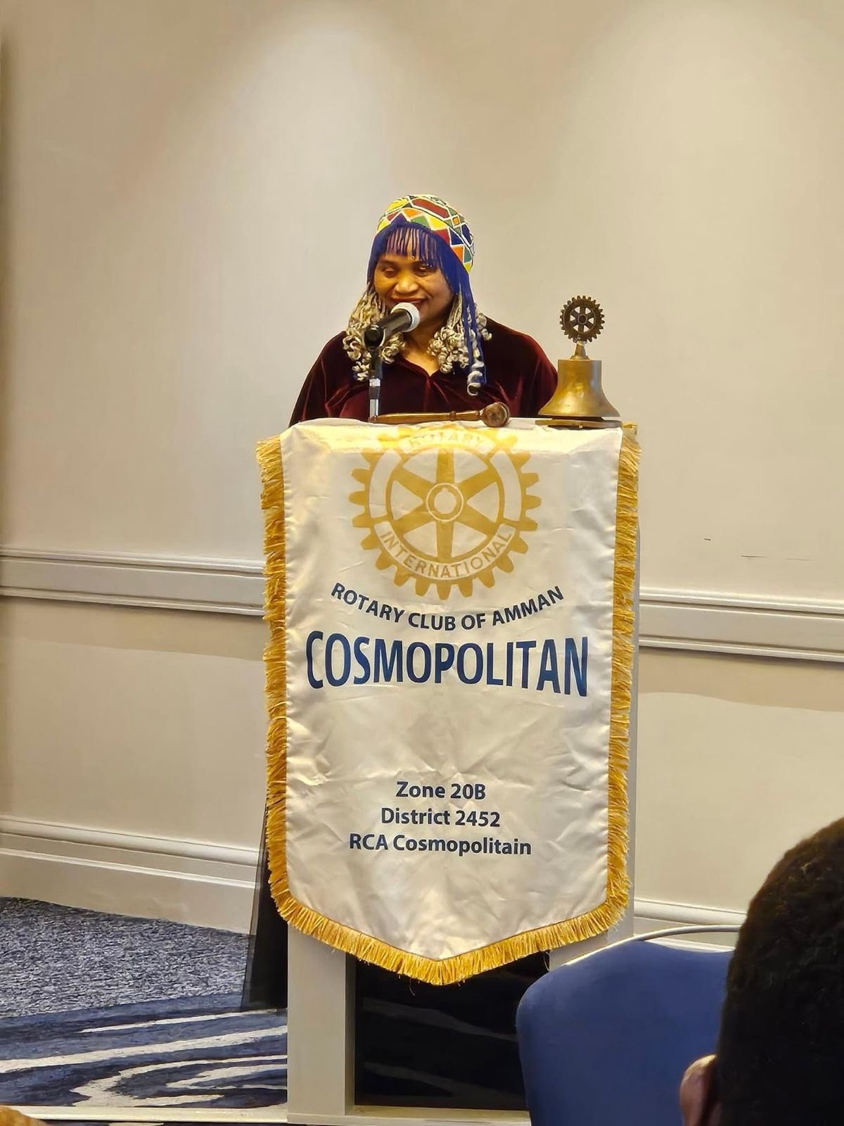Ambassador Mokuena was invited by the Amman Cosmopolitan Rotary Club and gave her speech at the Hyatt Hotel Wednesday detailing the principles that led her country to take the courageous step of challenging Israel’s genocidal war at the International Court of Justice. “Many South Africans were imprisoned, without trial, for months on end; some were exiled, in the struggle against the Apartheid system.” She explained that the decision to go to the World Court had come from shared experience with what Palestinians were enduring.