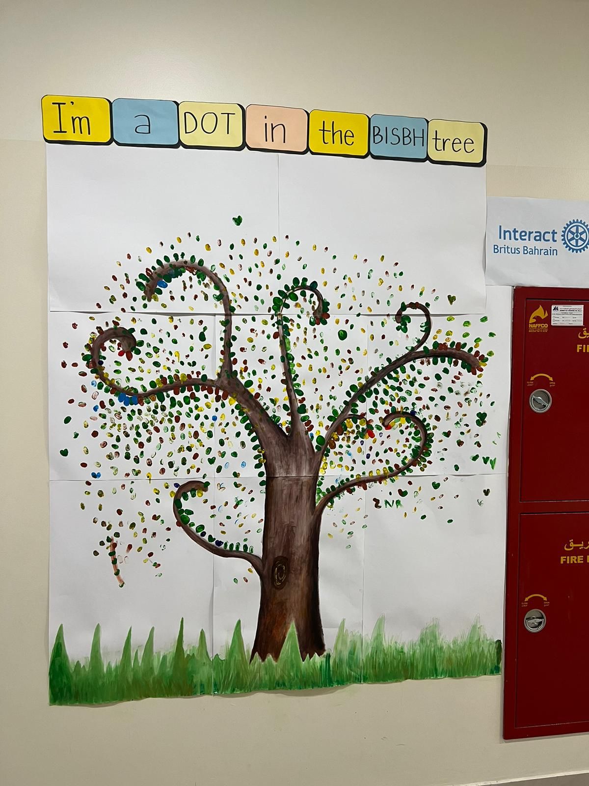 British International School celebrated Children’s Day on Monday, the 20th of November. To truly honor this momentous occasion, members of the Britus Bahrain Interact Club prepared several activities that aim to promote unity between their brilliant students. The highlight for many students was the artwork of a tree painted by several talented students in the Interact Club. Many students from every grade level provided input in the creation of the artwork by stamping their fingerprints around the branches of the tree to make it appear like leaves. This simple yet creative art piece symbolizes the unity of the students and their willingness to work together for the betterment of child welfare. The tree itself references nature and growth, therefore simultaneously teaching students the importance of responsibility and the value of improving oneself. To further encourage these important life lessons all students were asked to bring potted plants. These plants were placed around the school to proudly display what the students were able to achieve on this day.