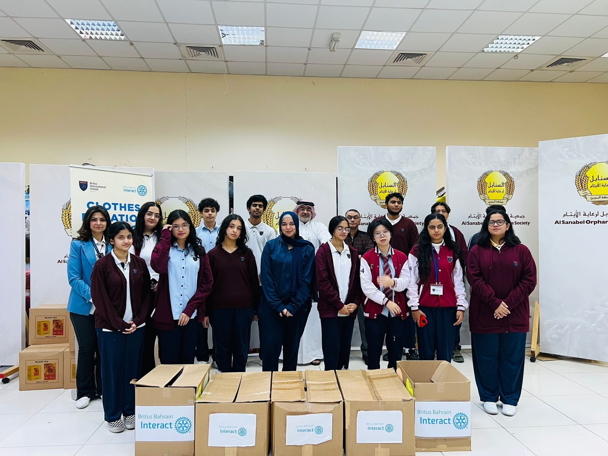 On March 5th, 2024, the Britus Bahrain Interact Club, donated clothes to orphaned childrens in Bahrain. The event theme “What you can spare they can wear” was held at the Britus School in Bahrain. The club collected the clothes from students and staff, and then they were washed, sorted and distributed to the orphans. The event was a great success, and it helped to provide much-needed clothing to the orphans. The club would like to thank everyone who donated clothes and Alsanabel Orphan Care Society and they hope to continue to do this type of event in the future.