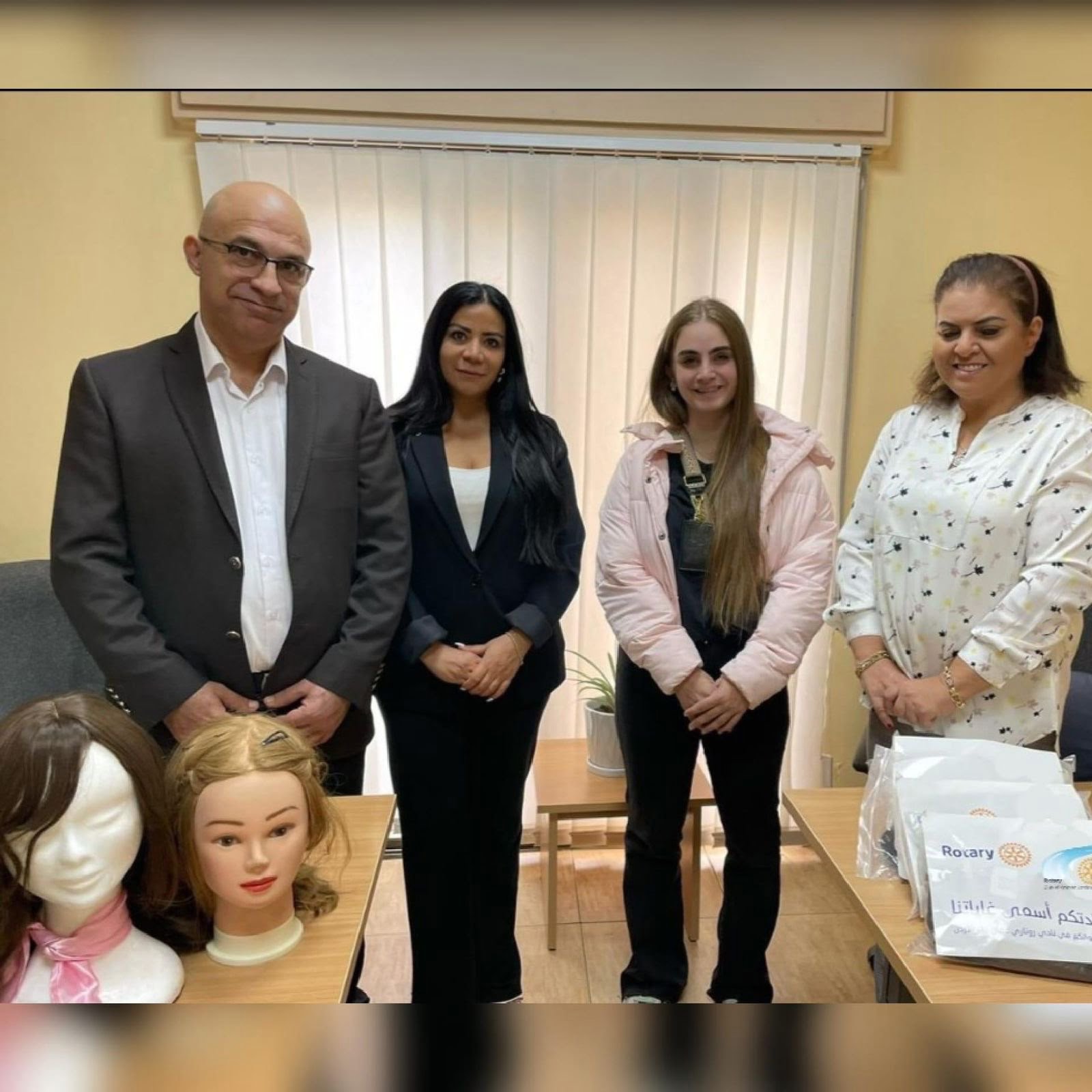 Rotary Club Amman Jordan River President and members made their yearly donation today to King Hussein Cancer Foundation (KHCF) of natural hair wigs for needy women and young lady patients…KHCF expressed its appreciation for the efforts of RCA Jordan River 🇯🇴 in raising awareness of breast cancer and women moral support in the fight against the disease and how Rotary …SERVE TO CHANGE LIVES…