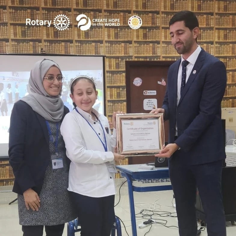 The President of RCSB Adnan Alameer, and members of the club’s Board of Directors presented the Rotary Certificate to EarlyAct Student Board of Directors the establishment of the Britus Bahrain EarlyAct Club.