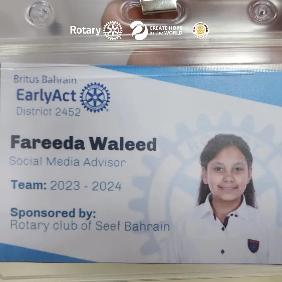 In joint cooperation between the Bahrain Rotary Club of Seef Bahrain and Britus International School, an EarlyAct club was established under the sponsorship and supervision of the Rotary Club of Seef Bahrain.