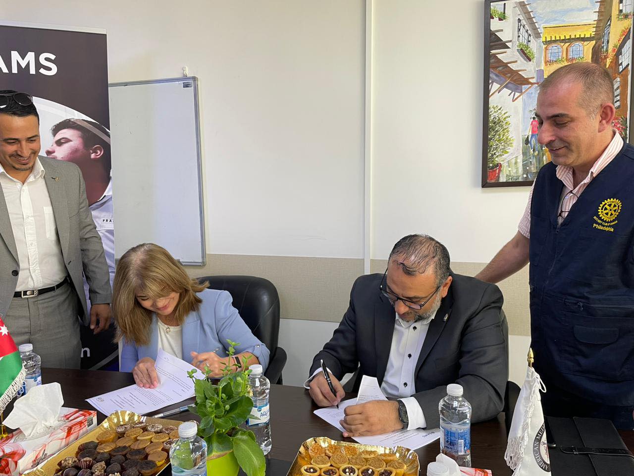 The Rotary Club of Amman Philadelphia signed a joint cooperation agreement with the Syrian American Medical Society – SAMS, represented by the Program Director and Jordan country representative, Ms. Lina Abu Nuwar. Club President, Tariq Hammad, handed over the medical donations provided by the Rotary Club of Amman Philadelphia as a contribution from the club to the medical campaign organized by SAMS, which includes providing treatments and performing operations free of charge for all residents of the Hashemite Kingdom of Jordan, with the participation of doctors from the United States