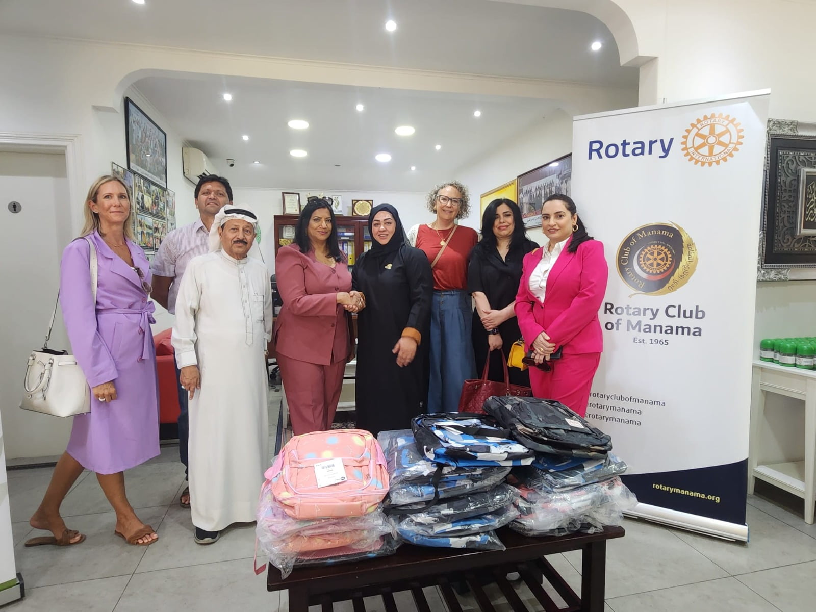 The Rotary Club of Manama and the Interact Club of Manama jointly distributed school bags to children through local charities. Through the course of a week, school bags were distributed to the following charities: Al Sanabel Orphan Care Society, the Tree of Life Society, AlKawther Society, and the Riffa Women Cultural & Charity Society